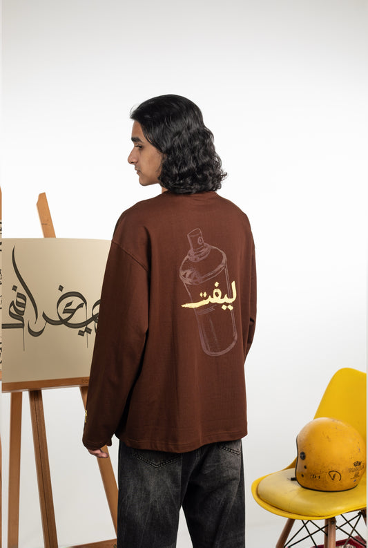 brown left arabic graphic tee -long sleeve
